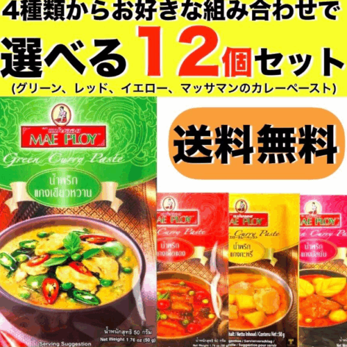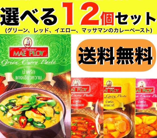商品情報 大人気の美味しいMAE PLOYのカレーペースト4種(グリーン、レッド、マッサマン、イエロー)から、 お好きな12個を選べるセットです。 タ...