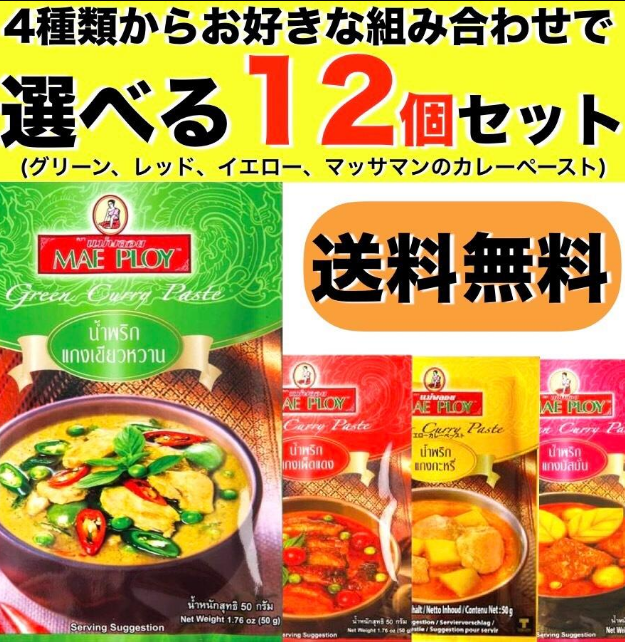 メープロイ タイカレーペースト 50g 12個 グリーン イエロー レッド マッサマン ハラル認証(ハラール)